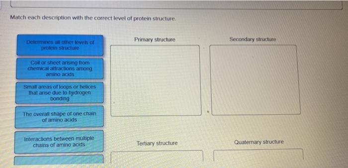 Match Each Description With the Correct Level of Protein Structure.